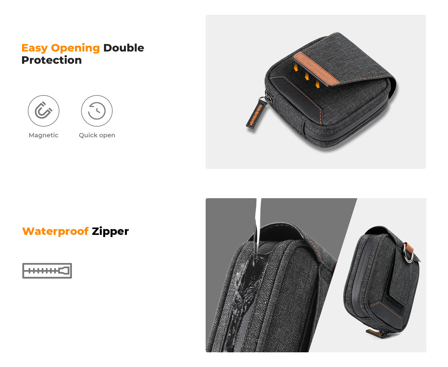 Included with the kit is a padded four-slot pouch that protects each filter individually. The separate compartments help you sort and organise the ND strengths. Compact and durable, the pouch fits easily into any camera bag, ensuring your filters remain clean, safe, and ready for immediate use. It also has a water resistant zipper and padding to protect your filters. The Clasp is magnetic so it is a quick open and close operation.